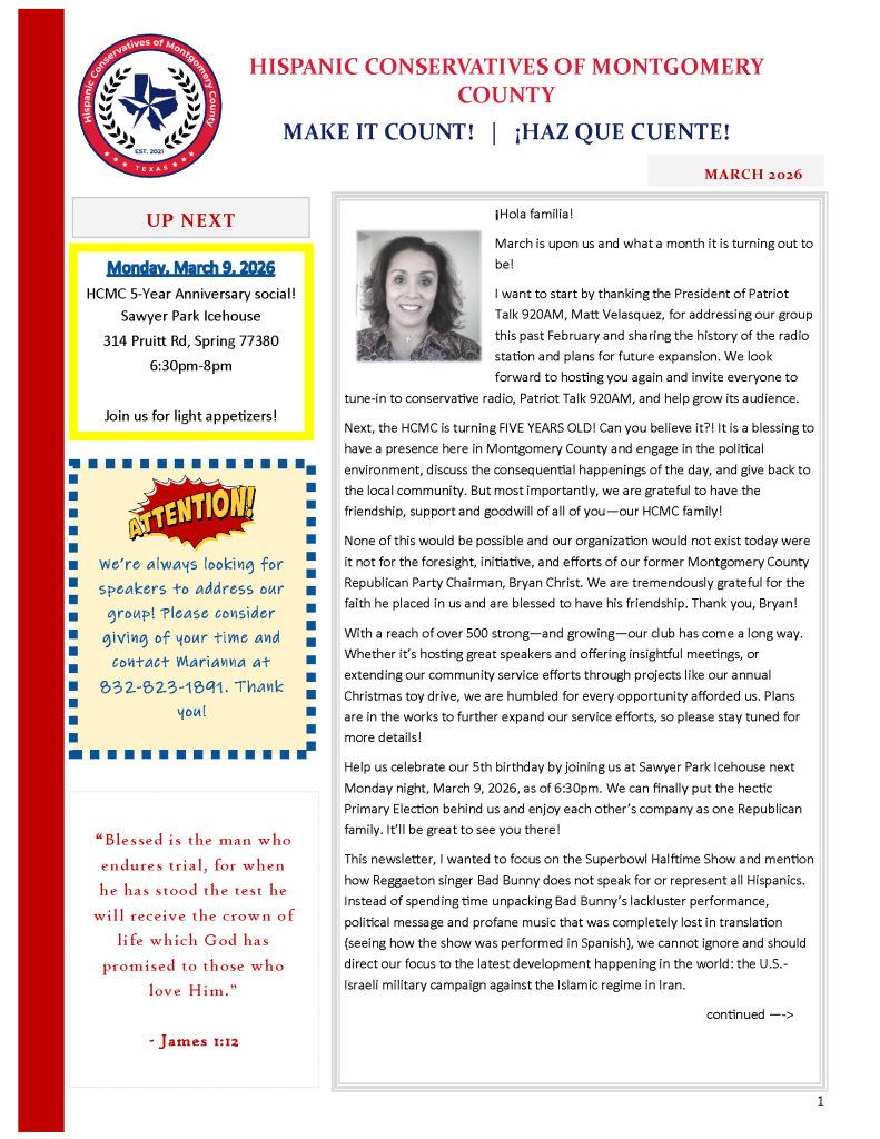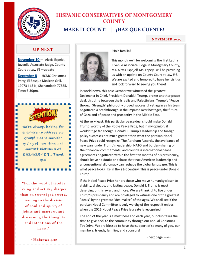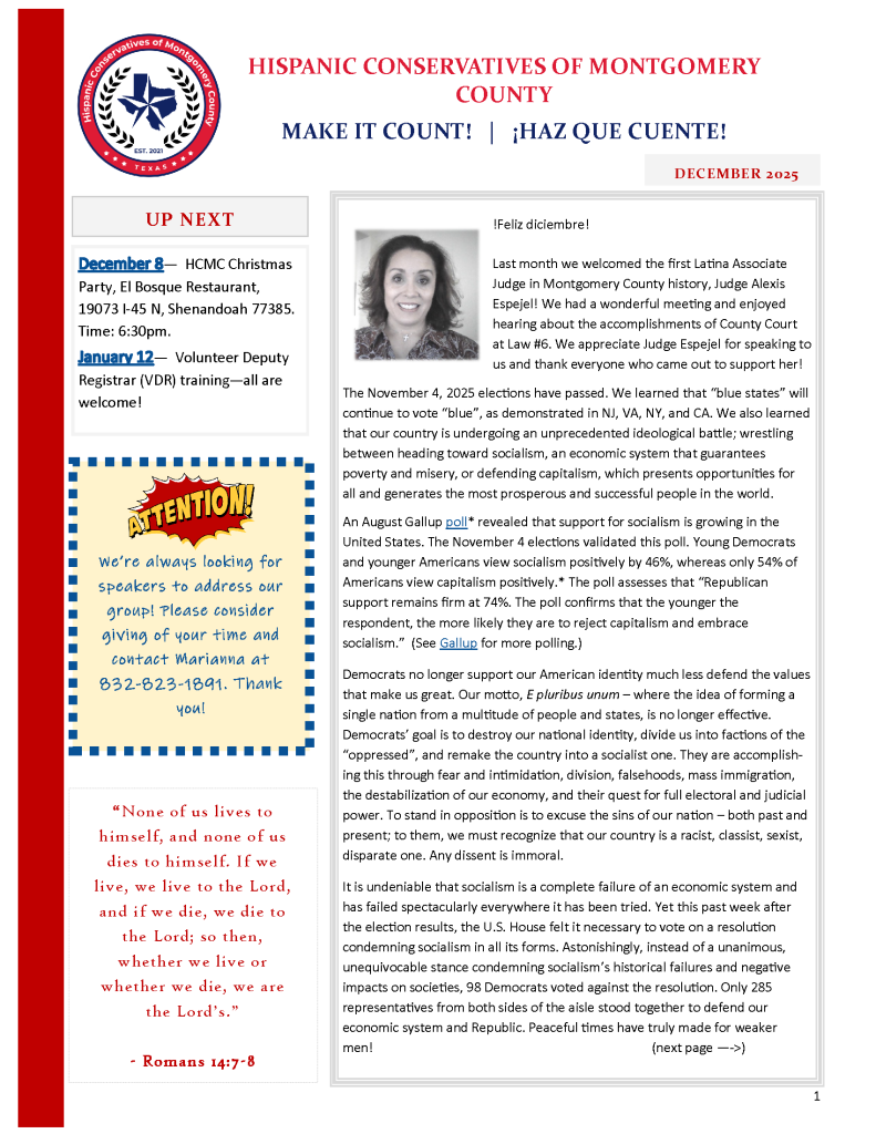 NEW THIS MONTH MEETINGS NEWSLETTER UP NEXT MONTGOMERY COUNTY ON THE MOVE HCMC AT WORK Join our newsletter!