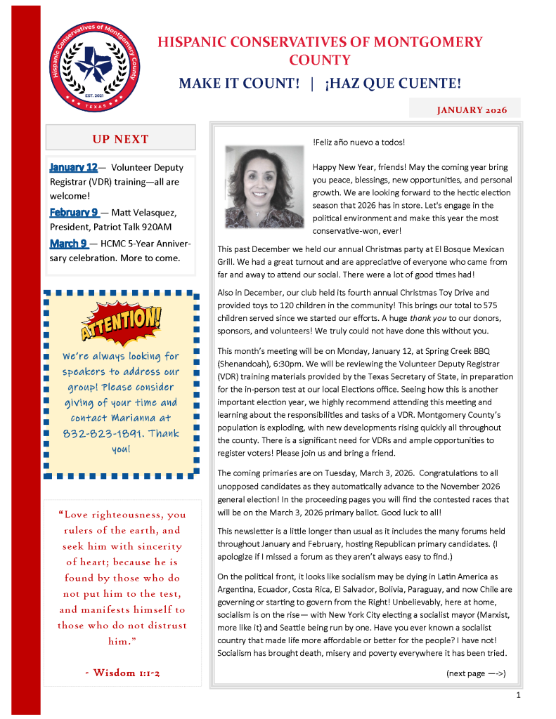 NEW THIS MONTH MEETINGS NEWSLETTER UP NEXT MONTGOMERY COUNTY ON THE MOVE HCMC AT WORK Join our newsletter!
