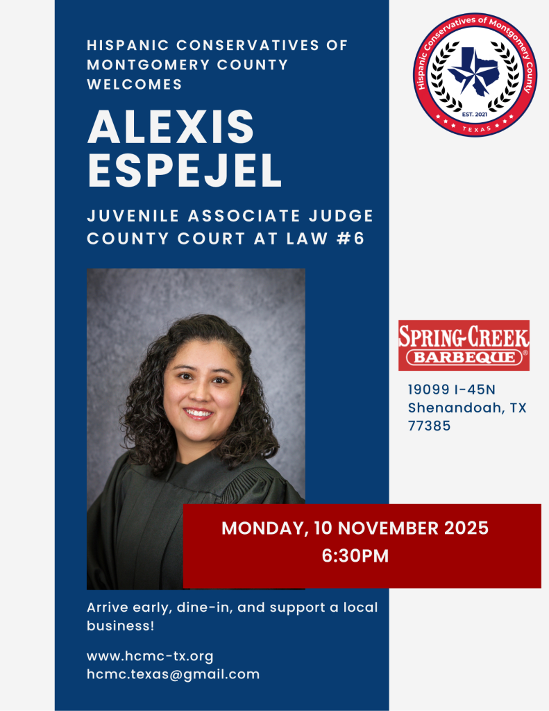 19099 Interstate 45 N, Conroe, TX 77385-8748, 6:30pm. Our December Christmas Social event is held off site. We are closed in July.